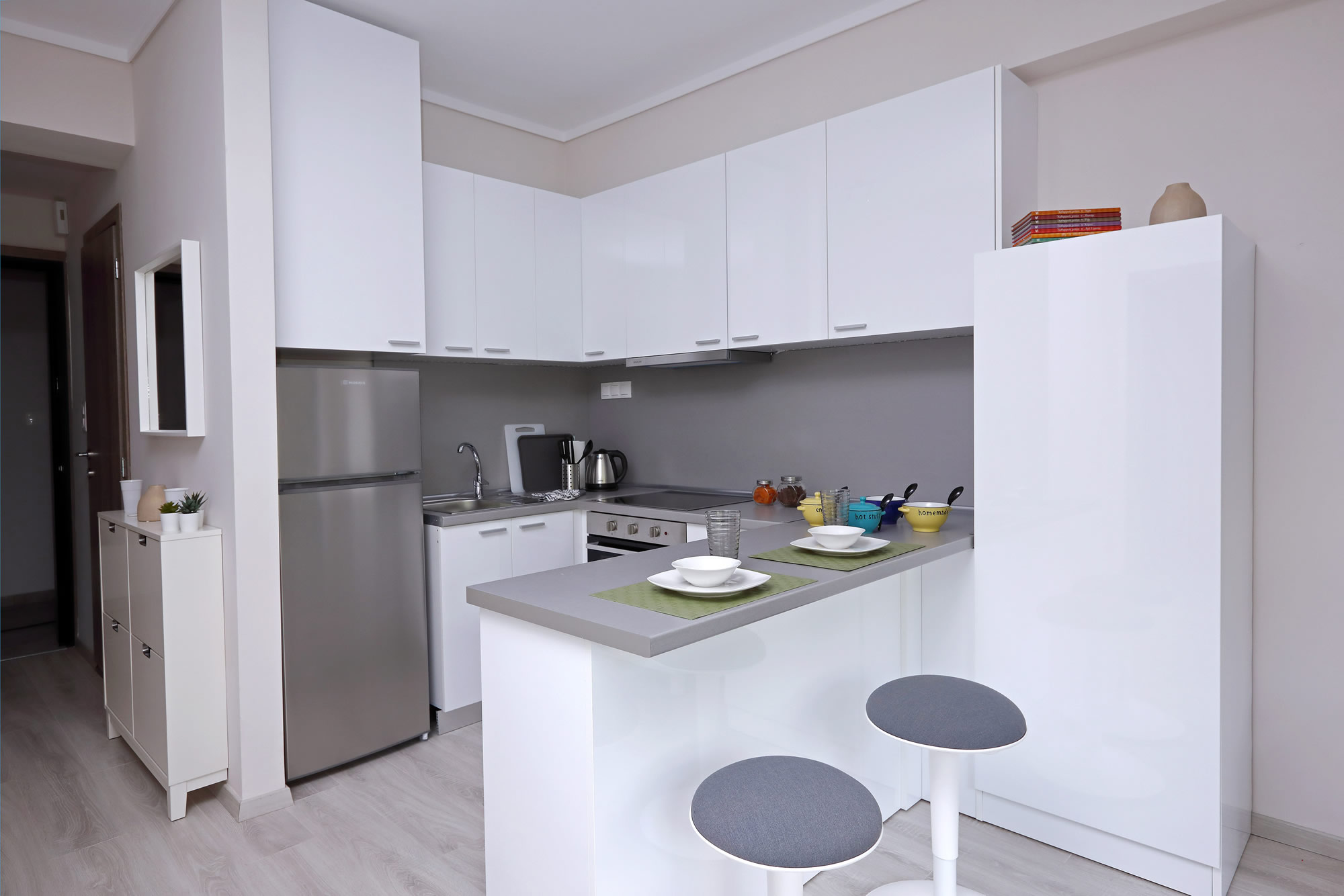 • Ανοικτού τύπου, με ντουλάπια (επάνω και κάτω) και συρταριέρα